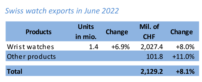 Swiss watchmaking in June 2022