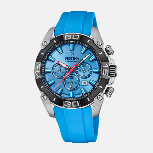 Offering a Festina Men's Chrono Bike Light Blue Dial and Light Blue Strap is a great choice because it is a stylish and reliable watch. It is equipped with a quartz movement, which ensures accurate timekeeping. The light blue dial and strap make this watch look elegant and sophisticated. The stainless steel case is also very durable, making it a great option for everyday wear. Additionally, this watch is water resistant up to 20 bar, making it suitable for swimming and other water activities. With its excellent features, this watch is a great choice for anyone who wants a stylish and reliable timepiece.
